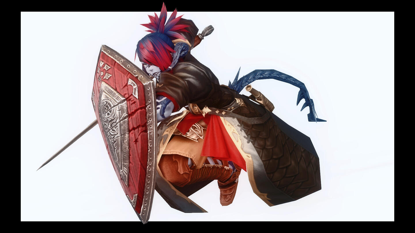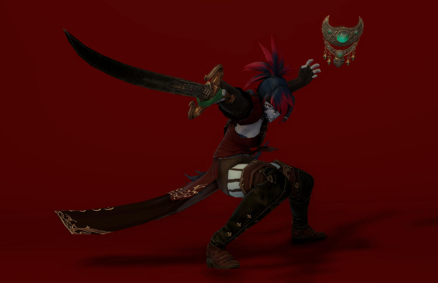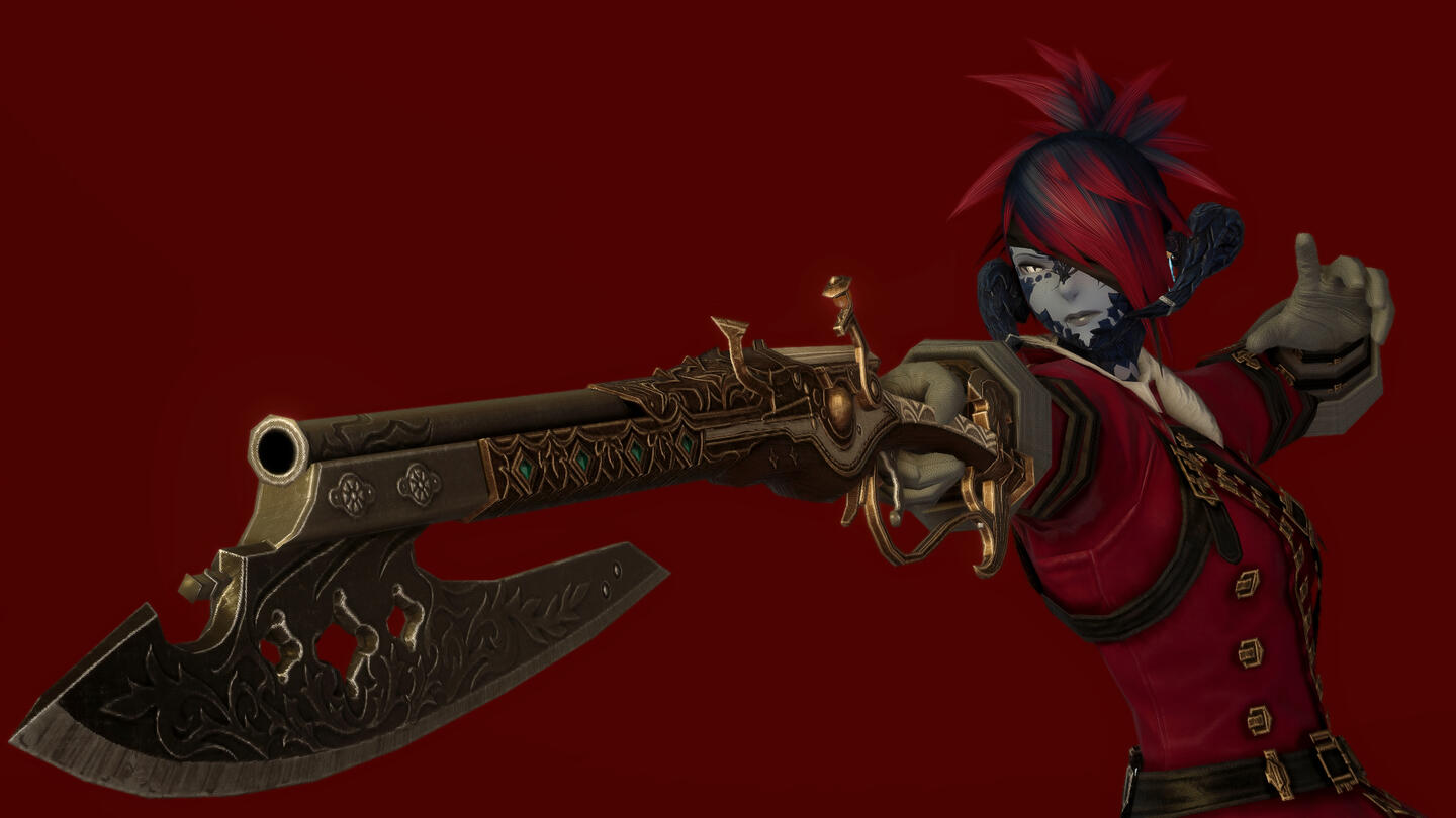 Originally a DRG that learned RDM, she gained enough experience to meld full WHM/BLM abilities with her melee DRK, in turn borrowing flourishes from GNB and WAR resulting in a much more heavy hitting but extremely mobile caster/tank cross class.